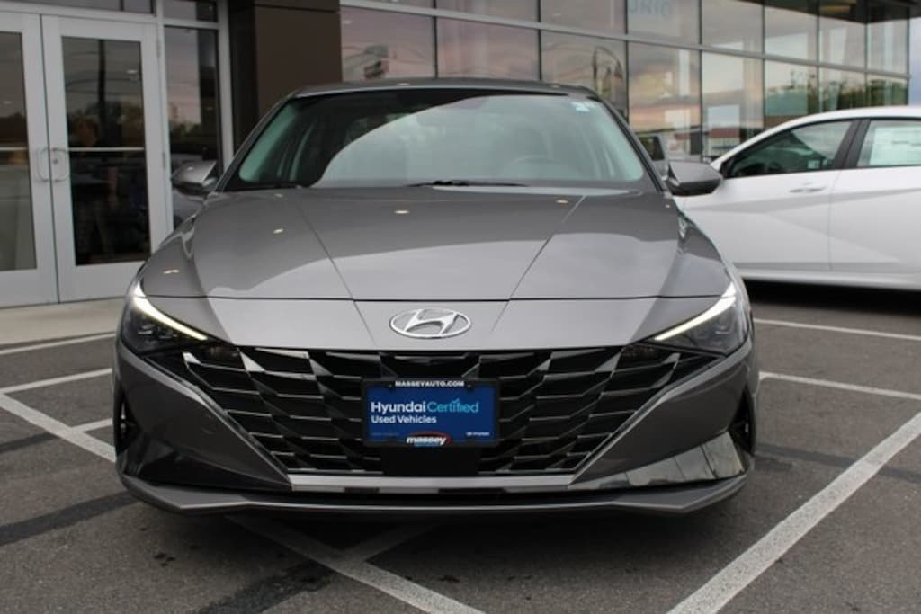 Recent Arrival! Clean CARFAX. 49/52 City/Highway MPG 2022 Hyundai Elantra Hybrid Limited Fluid Metal FWD 1.6L I4 DGI Hybrid DOHC 16V 6-Speed EcoShift Dual Clutch Limited Hyundai Certified, 1.6L I4 DGI Hybrid DOHC 16V, 17" x 7.0J Alloy Wheels, 4-Wheel Disc Brakes, 8 Speakers, ABS brakes, Air Conditioning, Alloy wheels, AM/FM radio: SiriusXM, Apple CarPlay & Android Auto, Auto High-beam Headlights, Auto-dimming Rear-View mirror, Automatic temperature control, Brake assist, Bumpers: body-color, Cargo Block, Cargo Hook, Cargo Net, Cargo Package, Cargo Side Bins, Carpeted Floor Mats, Delay-off headlights, Driver door bin, Driver vanity mirror, Dual front impact airbags, Dual front side impact airbags, Electronic Stability Control, Emergency communication system: Blue Link Connected Car Service (3-year complimentary subscription), Exterior Parking Camera Rear, First Aid Kit, Front anti-roll bar, Front Bucket Seats, Front Center Armrest, Front dual zone A/C, Front reading lights, Front wheel independent suspension, Fully automatic headlights, Heated & Ventilated Front Bucket Seats, Heated door mirrors, Heated front seats, Illuminated entry, Leather Shift Knob, Leather-Trimmed Seating Surfaces, Low tire pressure warning, Memory seat, Navigation System, Occupant sensing airbag, Option Group 01, Outside temperature display, Overhead airbag, Overhead console, Panic alarm, Passenger door bin, Passenger vanity mirror, Power door mirrors, Power driver seat, Power moonroof, Power steering, Power windows, Preferred Accessory Package, Radio: AM/FM/HD/SiriusXM Display Audio, Rear seat center armrest, Rear window defroster, Remote keyless entry, Reversible Cargo Tray, Security system, Speed control, Speed-sensing steering, Split folding rear seat, Steering wheel mounted audio controls, Tachometer, Telescoping steering wheel, Tilt steering wheel, Traction control, Trip computer, Turn signal indicator mirrors, Variably intermittent wipers, Ventilated front seats, Wheel Locks, 1.6L I4 DGI Hybrid DOHC 16V. Certified. Hyundai Details: