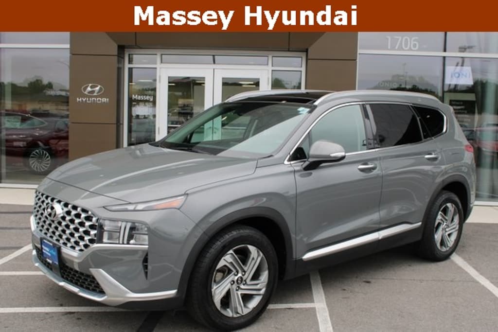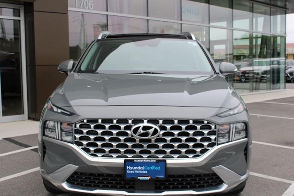 Recent Arrival! 25/28 City/Highway MPG 2022 Hyundai Santa Fe SEL Hampton Gray FWD 2.5L I4 8-Speed Automatic with SHIFTRONIC SEL Black Leather, 12.3" LCD Multi-Information Display, 18" x 7.5J Alloy Wheels, 4-Wheel Disc Brakes, 6 Speakers, 8-Way Power Passenger Seat, ABS brakes, Acoustic-Laminated Front Side Windows, Air Conditioning, Alloy wheels, AM/FM radio: SiriusXM, Apple CarPlay & Android Auto, Auto High-beam Headlights, Auto-Dimming Rear-View Mirror, Axle Ratio: 3.798, Brake assist, Bumpers: body-color, Cargo Cover/Screen, Cargo Net, Cargo Package, Cargo Tray, Carpeted Floor Mats, Convenience + Premium Package, Delay-off headlights, Driver door bin, Driver vanity mirror, Dual Automatic Temperature Control, Dual front impact airbags, Dual front side impact airbags, Electronic Stability Control, Emergency communication system, Exterior Parking Camera Rear, First Aid Kit, Four wheel independent suspension, Front anti-roll bar, Front Bucket Seats, Front Center Armrest, Front reading lights, Fully automatic headlights, Hands-Free Smart Liftgate w/Hands-Free Auto Open, Heated door mirrors, Heated Front Bucket Seats, Heated front seats, Heated Side Mirrors w/Turn Signal Indicators, Highway Driving Assist, Hyundai Digital Key, Illuminated entry, Leather Seat Trim, Leather Wrapped Steering Wheel, LED Interior Lights, LED Taillights, Low tire pressure warning, Manual Rear Side Sunshades, Occupant sensing airbag, Option Group 02, Option Group 03, Outside temperature display, Overhead airbag, Overhead console, Panic alarm, Panoramic Sunroof, Passenger door bin, Passenger vanity mirror, Power door mirrors, Power driver seat, Power Release 2nd Row Seats, Power steering, Power windows, Puddle Lamps, Radio: AM/FM Display Audio, Radio: AM/FM Harman Kardon Display Audio, Rear anti-roll bar, Rear seat center armrest, Rear window defroster, Rear window wiper, Remote keyless entry, Security system, Speed control, Speed-sensing steering, Split folding rear seat, Spoiler, Steering wheel mounted audio controls, Tachometer, Telescoping steering wheel, Tilt steering wheel, Traction control, Trip computer, Ultrasonic Rear Occupant Alert, Variably intermittent wipers, YES Essentials Stain-Resistant Cloth Seat Trim, Black Leather. Call (301) 739-6756 or send an email to sales@masseyauto.com to confirm availability!