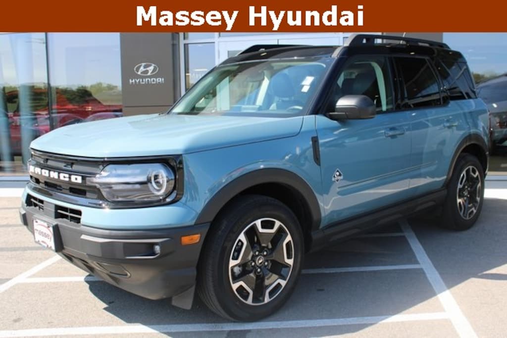Recent Arrival! 25/28 City/Highway MPG 2023 Ford Bronco Sport Outer Banks Area 51 4WD 1.5L EcoBoost 8-Speed Automatic Outer Banks 3.80 Axle Ratio, 4-Wheel Disc Brakes, 6 Speakers, ABS brakes, Air Conditioning, Alloy wheels, AM/FM radio: SiriusXM, AM/FM Stereo, Auto High-beam Headlights, Auto-dimming Rear-View mirror, Automatic temperature control, Brake assist, Cargo Management System, Class II Trailer Tow Package w/Trailer Sway Control, Compass, Delay-off headlights, Driver door bin, Driver vanity mirror, Dual front impact airbags, Dual front side impact airbags, Electronic Stability Control, Emergency communication system: SYNC 3 911 Assist, Equipment Group 300A, Evasive Steering Assist, Ford Co-Pilot360 Assist+, Four wheel independent suspension, Front anti-roll bar, Front Bucket Seats, Front Center Armrest, Front dual zone A/C, Front fog lights, Front reading lights, Fully automatic headlights, HD Radio, Heated door mirrors, Heated front seats, Heated steering wheel, Illuminated entry, Intelligent Adaptive Cruise Control w/Stop & Go, Knee airbag, Leather Trimmed Heated Sport Contour Bucket Seats, Low tire pressure warning, Memory seat, Occupant sensing airbag, Outside temperature display, Overhead airbag, Overhead console, Panic alarm, Passenger door bin, Passenger vanity mirror, Power door mirrors, Power driver seat, Power passenger seat, Power steering, Power windows, Radio data system, Rain sensing wipers, Rear anti-roll bar, Rear Parking Sensors, Rear reading lights, Rear seat center armrest, Rear window defroster, Rear window wiper, Remote keyless entry, Security system, SiriusXM, Speed control, Speed-sensing steering, Speed-Sensitive Wipers, Split folding rear seat, Steering wheel mounted audio controls, SYNC 3 Communications & Entertainment System, SYNC 3/Apple CarPlay/Android Auto, Tachometer, Tech Package, Telescoping steering wheel, Tilt steering wheel, Traction control, Trip computer, Universal Garage Door Opener (UGDO), Variably intermittent wipers, Voice-Activated Touchscreen Navigation System, Wheels: 18" Ebony Black-Painted Aluminum, Wireless Charging Pad. Call (301) 739-6756 or send an email to sales@masseyauto.com to confirm availability!