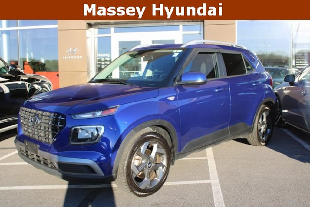 Recent Arrival! 29/33 City/Highway MPG 2022 Hyundai Venue SEL Intense Blue FWD I4 CVT SEL 4-Wheel Disc Brakes, 6 Speakers, 6.052 Axle Ratio, 6.5J x 17" Alloy Wheels, ABS brakes, Air Conditioning, Alloy wheels, AM/FM radio, Apple CarPlay & Android Auto, Auto High-beam Headlights, Automatic temperature control, Brake assist, Bumpers: body-color, Cargo Net, Cargo Tray, Cloth Seat Trim, Delay-off headlights, Driver door bin, Driver vanity mirror, Dual front impact airbags, Dual front side impact airbags, Electronic Stability Control, Front anti-roll bar, Front Bucket Seats, Front Center Armrest, Front wheel independent suspension, Fully automatic headlights, Illuminated entry, Leather Shift Knob, Leather steering wheel, Low tire pressure warning, Mudguards, Occupant sensing airbag, Option Group 01, Outside temperature display, Overhead airbag, Overhead console, Panic alarm, Passenger door bin, Passenger vanity mirror, Power door mirrors, Power moonroof, Power steering, Power windows, Radio: AM/FM/HD Display Audio, Rear window defroster, Rear window wiper, Remote keyless entry, Roof rack: rails only, Security system, Speed control, Speed-sensing steering, Split folding rear seat, Spoiler, Steering wheel mounted audio controls, Tachometer, Telescoping steering wheel, Tilt steering wheel, Traction control, Trip computer, Variably intermittent wipers. Call (301) 739-6756 or send an email to sales@masseyauto.com to confirm availability!