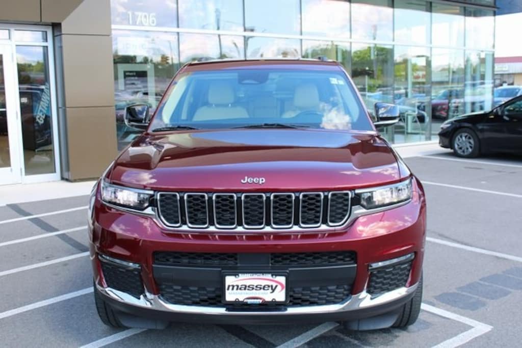 Recent Arrival! 2021 Jeep Grand Cherokee L Limited Velvet Red Pearlcoat 4WD 3.6L V6 24V VVT 8-Speed Automatic Limited 10.1" Touchscreen Display, 220 Amp Alternator, 2nd Row 60/40 Bench w/Manual Tip/Slide, 2nd Row Seat Center Armrest/Cupholders, 3 Rear Seat Head Restraints, 3.45 Rear Axle Ratio, 3rd row seats: split-bench, 4-Wheel Disc Brakes, 506 Watt Amplifier, 6 Speakers, 7-Passenger Seating, 9 Amplified Speakers w/Subwoofer, ABS brakes, Air Conditioning, Alloy wheels, AM/FM radio: SiriusXM w/360L, Anti-whiplash front head restraints, Apple CarPlay, Apple CarPlay/Android Auto, Audio memory, Auto High-beam Headlights, Automatic Headlamp Leveling System, Automatic temperature control, Brake assist, Bridgestone Brand Tires, Bumpers: body-color, Capri Leather Seats, Center Rear 3-Point Seat Belt, Compass, Connected Travel & Traffic Services, Connectivity - US/Canada, Delay-off headlights, Disassociated Touchscreen Display, Driver door bin, Driver vanity mirror, Dual front impact airbags, Dual front side impact airbags, Electronic Stability Control, Emergency communication system, Four wheel independent suspension, Front anti-roll bar, Front Bucket Seats, Front Center Armrest w/Storage, Front dual zone A/C, Front fog lights, Front reading lights, Fully automatic headlights, Garage door transmitter, Google Android Auto, GPS Antenna Input, GPS Navigation, HD Radio, Heated door mirrors, Heated front seats, Heated rear seats, Heated steering wheel, Heavy-Duty Engine Cooling, Illuminated entry, Integrated Center Stack Radio, Integrated Voice Command w/Bluetooth, Knee airbag, Leather steering wheel, Low tire pressure warning, Manual Fold Seatbacks, Memory seat, MOPAR Bright Side Steps, MOPAR Rear Seat Entertainment, Normal Duty Suspension, Occupant sensing airbag, Outside temperature display, Overhead airbag, Overhead console, Panic alarm, ParkView Rear Back-Up Camera, Passenger door bin, Passenger vanity mirror, Power door mirrors, Power driver seat, Power Liftgate, Power passenger seat, Power steering, Power windows, Quick Order Package 22E, Radio data system, Radio: Uconnect 5 Nav w/10.1" Display, Radio: Uconnect 5 w/8.4" Display, Rear air conditioning, Rear anti-roll bar, Rear Load Leveling Suspension, Rear reading lights, Rear window defroster, Rear window wiper, Reclining 3rd row seat, Remote keyless entry, Roof rack: rails only, Security system, SiriusXM Satellite Radio, SiriusXM w/360L, Speed control, Speed-Sensitive Wipers, Split folding rear seat, Spoiler, Steering wheel mounted audio controls, Tachometer, Telescoping steering wheel, Tilt steering wheel, Traction control, Trailer Hitch Zoom, Trailer Tow Group (B) (DISC), Trip computer, Turn signal indicator mirrors, USB Host Flip, Variably intermittent wipers, Voltmeter, Wheels: 18" x 8.0" Fully Painted Aluminum 2, Wheels: 20" x 8.5" Polished/Painted Aluminum (DISC). Call (301) 739-6756 or send an email to sales@masseyauto.com to confirm availability!
